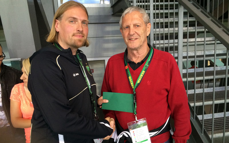Durch die Auktion und Spenden kamen insgesamt 700 Euro zusammen, die das tivoli12 magazin noch am selben Abend Horst Braun, dem Leiter der Damenabteilung, übergab. Braun: „Herzlichen Dank an alle Bieter und Spender! Wir können das Geld gut gebrauchen und werden es in Trainingsutensilien investieren.“