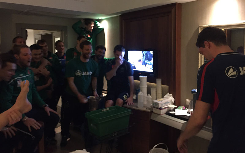 Ein super Abschluss vom Trainingslager ist mit dem 1:0 Testspielsieg gegen den starken Gegner SønderjyskE gelungen. Auch spielerisch war es heute ein großer Schritt in die richtige Richtung! Es wurden gute Chancen herausgespielt und hinten standen wir sicher. Das Tor entstand durch einen Freistoß. Lerchi traf die Mauer, ehe Mico den „Rebound“ schön in den 16er hob und Deutschi mit dem Kopf zur Stelle war. Nach dem Abendessen gab es noch eine Kopfballchallenge zwischen unseren beiden Masseuren Pati und Max. Neun Tischtennisbälle sollten in einem kleinen Müllkübel versenkt werden, wer mehr trifft gewinnt. Unser „neuer“ Max war natürlich nicht eingeweiht, dass sein letzter Ball kein echter Ball sondern ein rohes Ei war. Dementsprechend wollte er engagiert auch den letzten versenken, sehr zu unserer Freude ;-).