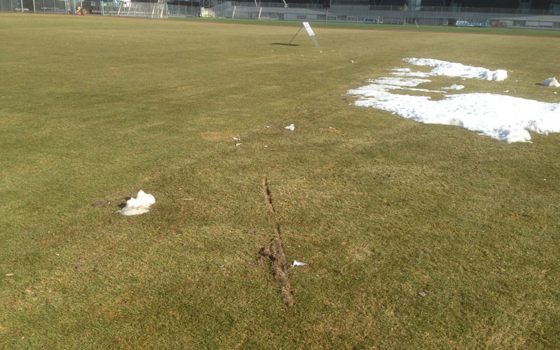 Die Profis haben ihr Trainingslager in der Türkei beendet. Groß war die Sehnsucht endlich auf Naturrasen trainieren zu können. In heimischen Gefilden war das trotz eines überaus milden Winters nicht möglich. Denn im Land der Berge wurde auf dem Trainingsgelände des FC Wacker Innsbruck ein 42 Meter hoher Stahlrohr-Koloss gebaut. Knapp drei Wochen dauerten die Auf- und Abbauarbeiten für den Air&Style Contest. Nach dem Event zeigte sich, dass 14.000 Paar Füße und die 285 Tonnen schwere und 42 Meter hohe Stahlkonstruktion die Trainingsinfrasturktur des FC Wacker Innsbruck nicht ungeschoren ließen und einige heftige Wunden auf dem Tivoli W1 hinterließen. Auch der Kunstrasenplatz, auf dem sich die Konzertbühne befand, hat gelitten.