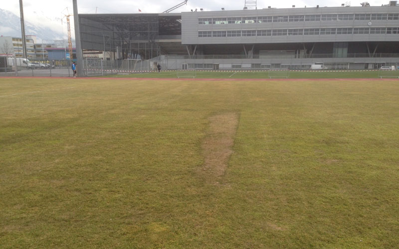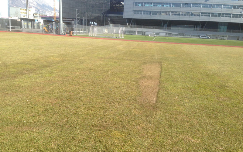 In den letzten Tagen hatten die beiden Platzwarte im Auftrag der Stadt Innsbruck alle Hände voll zu tun um die Trainngsstätte des FC Wacker Innsbruck wieder in einen halbwegs brauchbaren Zustand zu versetzen. Die geschlagenen Wunden wurden bestmöglich behandelt. Durch deren überaus großen Einsatz scheint der Platz sogar die ein oder andere Trainingseinheit vertragen zu können. Doch der Lokalaugenschein macht klar, dass er einige Zeit brauchen wird um sich vom Air & Style erholen zu können. Narben werden bleiben.