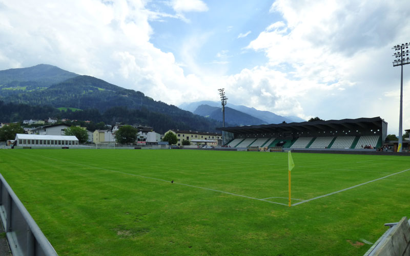Die Adresse des Stadions: Dr. Karl Stainerstr. 30 und 31. Von Innsbruck aus wären das 14,1 Kilometer.