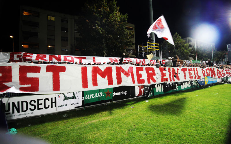 Noch ein Wort zu Wattens: Ambitioniert, (bis auf ein paar Wenige) freundlich und immer positive Stimmung verbreitend. Das macht die WSG Präsidentin gut. Und bei uns ist das Positivste bei diesem Spiel das Spruchband für Gernot Langes von unseren Fans gewesen. „Gernot L. – Nur du wirst immer ein Teil von uns sein“