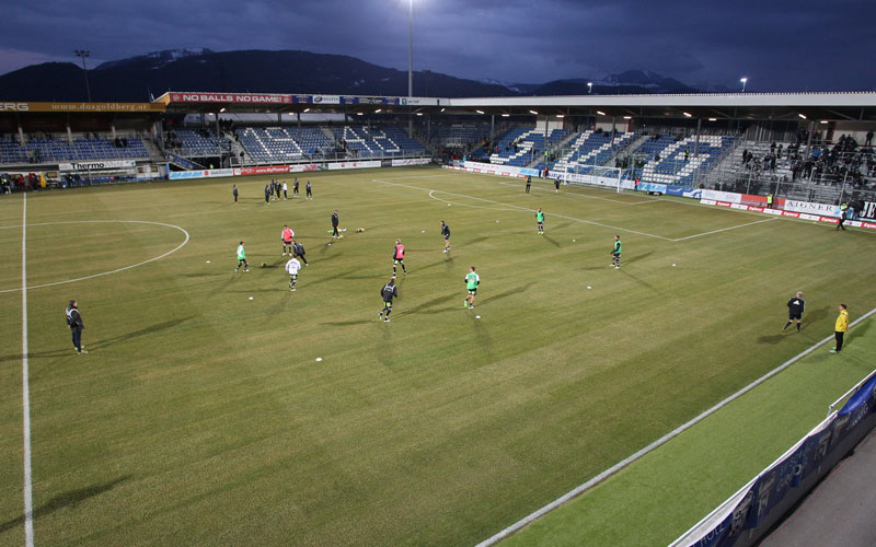 Mit der Zeit kamen nach und nach Stahlrohrtribünen hinzu. Mittlerweile ist „DAS.GOLDBERG-Stadion“, wie es aktuell heißt, auf drei Seiten verbaut und komplett überdacht und würde 4132 Personen Platz bieten. Auf der rechten Stadionseite ist die Zahl 1948 zu lesen. Bleibt die Frage, ob das nicht nur das Gründungsjahr des dortigen Heimvereins SV Grödig ist, oder vielleicht auch die höchste Zuschauerzahl, die dieses Stadion erlebt hat.