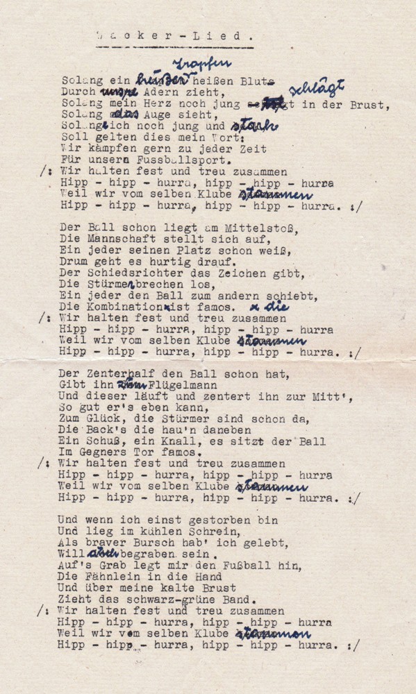 In der Monatsversammlung vom 6.2.1947 wird berichtet dass Dr. Linser erkrankte und das Training Dr. Pervulesko übernahm. Heute waren ganze 3 Mann beim Training… so wäre ein Training zwecklos. Weiters liegt nun bei jeder Versammlung das Wackerlied auf und ist zum Preis von 20 Groschen zu haben. Jeder Kamerad soll im Besitze eines solchen sein und es auch auswendig lernen dann wollen wir es auch fleissig singen.