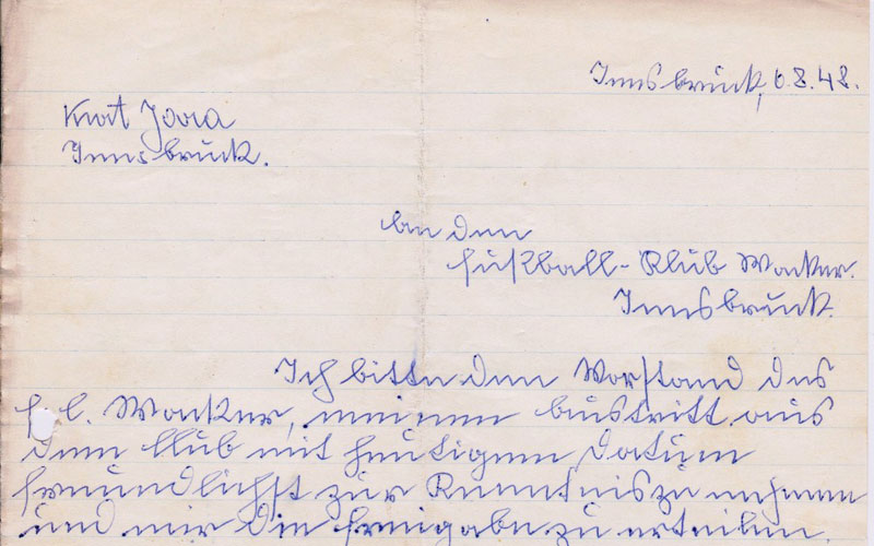 Ende Juli suchte Peter-Mayr-Sport um die Freigabe des Wacker-Spielers Kurt Jara (Vater des gleichnamigen später so erfolgreichen Spielers und Trainers des FCW) an. Etwas brisant war die Sache auch, da Wacker Innsbruck durch den Abstieg im Spieljahr 1948/49 sich in derselben Klasse befand. Am 6.8.1948 ersucht Kurt Jara den FC Wacker in einem dreiseitigen Brief um seine Freigabe. Nach drei weiteren Briefen seitens Peter-Mayr-Sport erteilte der FC Wacker Kurt Jara ab September 1948 die Freigabe.