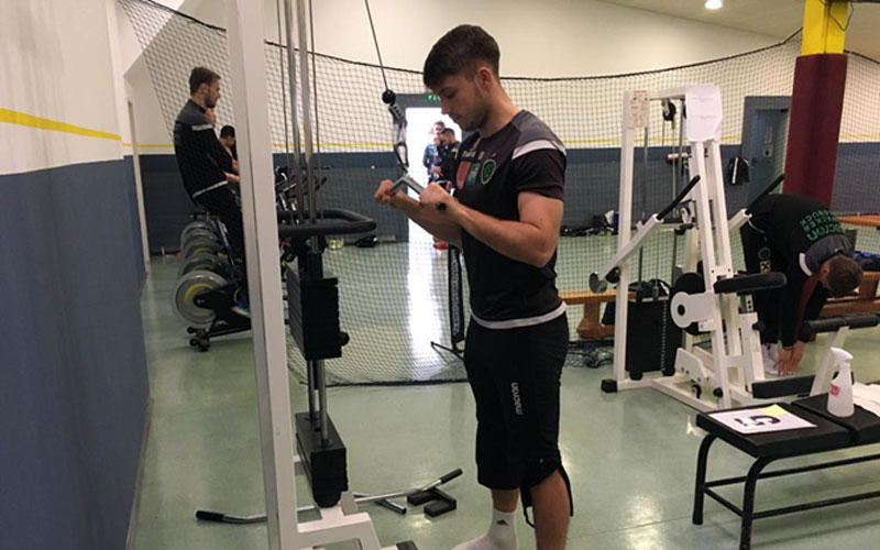 Ausgeschlafen wachte ich heute um 8:35 Uhr auf. Nach dem kräftezehrenden Spiel tat diese Stunde mehr Schlaf richtig gut. Nach dem Frühstück startete um 10:30 Uhr unsere Krafteinheit. Nach dem Aufwärmen waren zunächst Dehnübungen zu absolvieren. Das Krafttraining war dann in fünf knackigen Übungen aufgeteilt, die allesamt den Oberkörper beanspruchen.