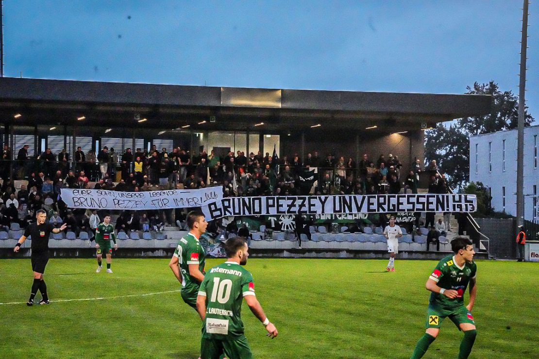 Für das Auswärtsspiel in Lauterach hätte ich seine originale Dress schon aus dem Kasten gekramt. Der Blick in den Liveticker war dann auch nichts für schwache Nerven und trug wenig zu meiner Genesung bei. Wer jedoch auch „dreckige“ Siege (3:2 Auswärtssieg) zu erringen vermag, befindet sich auf einem vielversprechenden Kurs. Des Weiteren wurde mir berichtet, dass die Anhänger der schwarz-grünen Mannschaft auf der Tribüne eine würdige Atmosphäre erzeugten und die verdienstvolle Legende Bruno Pezzey ehrten. Als ich dann das Foto mit den Transparenten der FCW-Fans gesehen habe, hatte ich feuchte Augen. Bruno ist und bleibt unvergessen. Schön wie unsere Fanszene diesen Auftritt zelebrierte. Auf dem Spielfeld wurde viel rotiert. Beinahe vielleicht zu viel. Trotzdem setzte sich die Qualität der Wackerianer schließlich durch. Ein Arbeitssieg, oder ein „dreckiger“ wie so ein Dreier oftmals genannt wird.