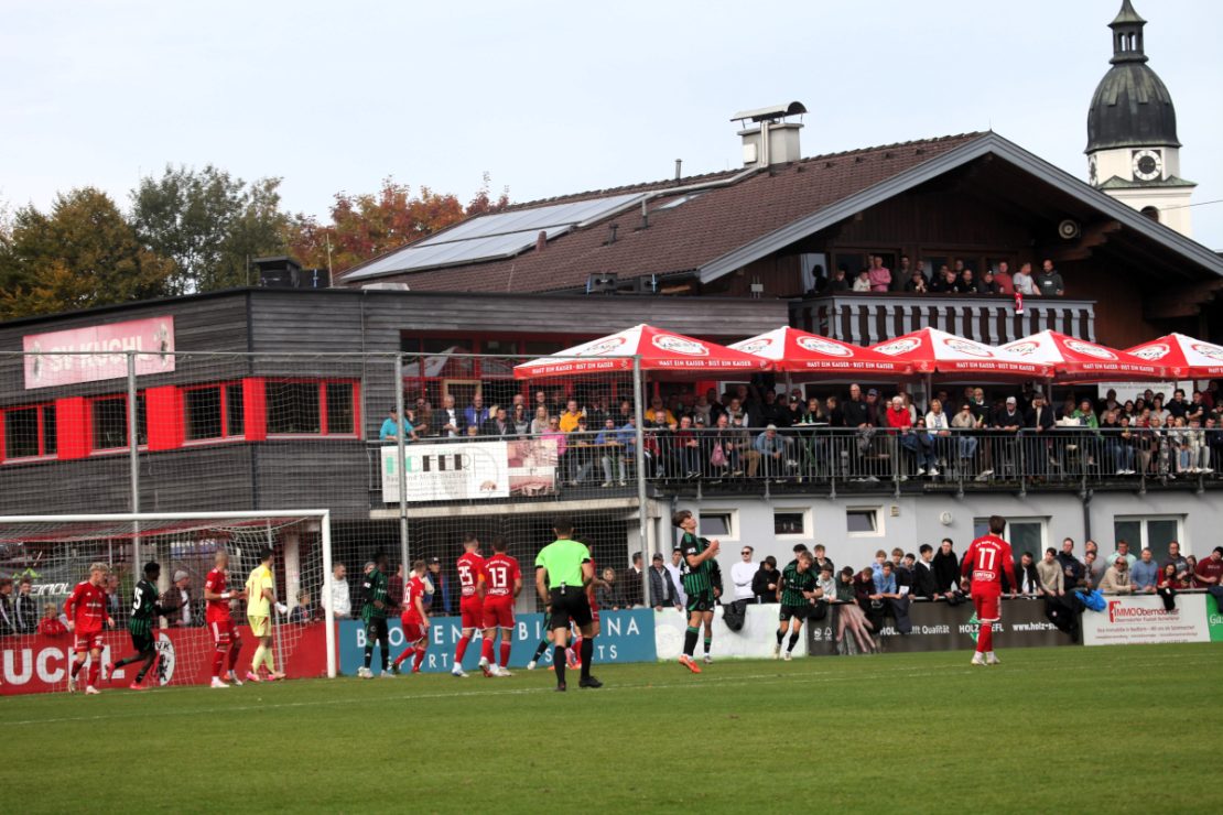 Meine vorangegangenen Äußerungen stehen in keinerlei Zusammenhang mit der (malerischen) Ortschaft Kuchl. Kuchl hat dem aus der Talebene aufragenden Georgenberg (lateinisch „cucullus“) seinen Namen zu verdanken. Der Ort hat römische Wurzeln und wie man zu sehen bekam – auch tirolerische von Holzbau Kundl. Gleichwohl demonstrierte der FC Wacker Innsbruck in Kuchl seine Dominanz auf und abseits des Rasens. Der SV Kuchl präsentierte sich als sehr guter Gastgeber. Man überließ sogar die einzige Tribüne in der Andreas Wimmer Arena den Wacker-Fans. Vielen Dank dafür und Gratulation zur guten Organisation im Vorfeld und dem gelungenen Ablauf. Nach offiziellen Angaben feierten 1000 Leute ein Fußballfest. Die paar violetten Provokateure wollten aber nicht mitfeiern…