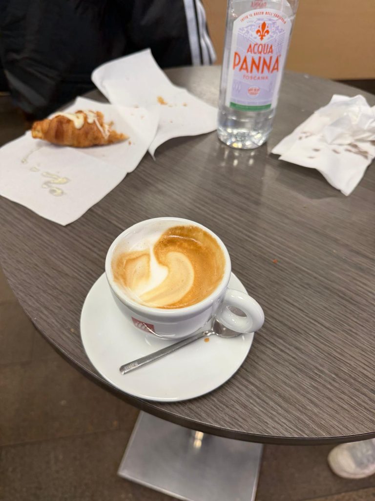 Nach einem Cappuccino bei der Raststätte ging es weiter Richtung Süden. Klar, wir wissen alle, einmal kurz über die Grenze und der Kaffee schmeckt schon gleich ganz anders. Ein Cornetto als klassisch italienisches Frühstück durfte natürlich auch nicht fehlen.