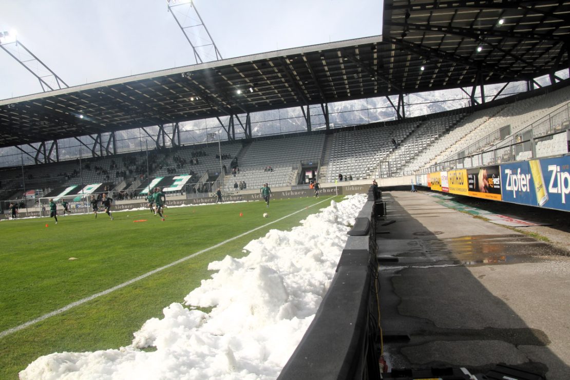 Innsbruck präsentierte sich am Samstag im Winterkleid. Von der Nordkette bis zum Patscherkofel eine herrliche Winterlandschaft. Nur im Tivoli fand sich ein schönes grünes Rasenviereck. Und das kostete tags zuvor viel Schweiß und so manche Schwielen an den Händen. Alle halfen zusammen, damit dieses Spiel überhaupt stattfinden konnte. Kurzfristig organisierte Freiwillige, Spieler und Spielerinnen und selbst so mancher Funktionär boten den Schneemassen mit der Schaufel die Stirn. Die Rasenheizung verhinderte schließlich eine Vereisung über Nacht.